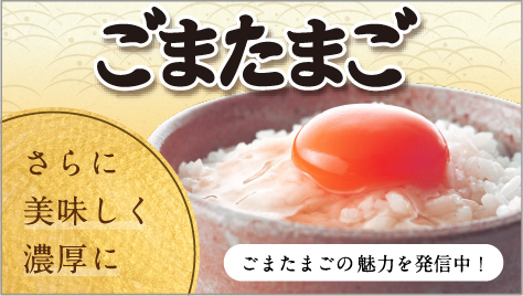 “ごま”を加えた<ごまたまご>専用飼料で育み産まれた卵 です。濃厚な黄身、おいしさを追求しました。ごまの栄養成分セサミン、ビタミンEとビタミンDが豊富です。