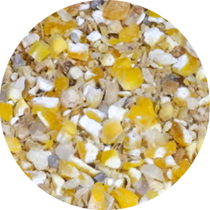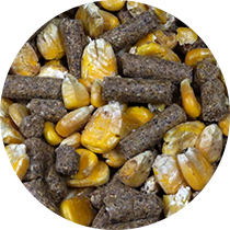 トウモロコシ、マイロ、大麦などをフレーク化した穀類やパイナップル粕等の自社開発原料をベースとした、肥育タイプに応じた飼料です。独自の発想と高度な配合技術で、良好な栄養バランスによる高品質の飼料を提供しています。