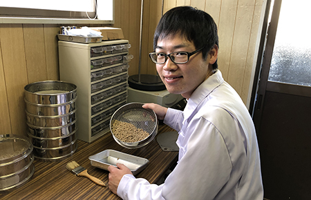 私が所属する養豚グループは養豚用飼料の商品開発業務と技術サポート業務を行う部署です。私は現在、主に試験管理業務と飼料設計業務を担当しています。
